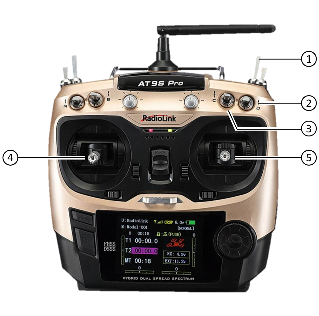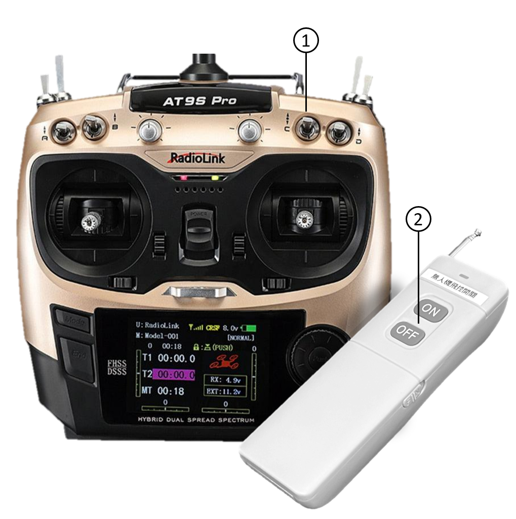 | ② 右上方撥桿 | 上位控制模式 | 切換控制權: - Remote controller:遙控器手動控制 - Mission computer:任務電腦控制 |