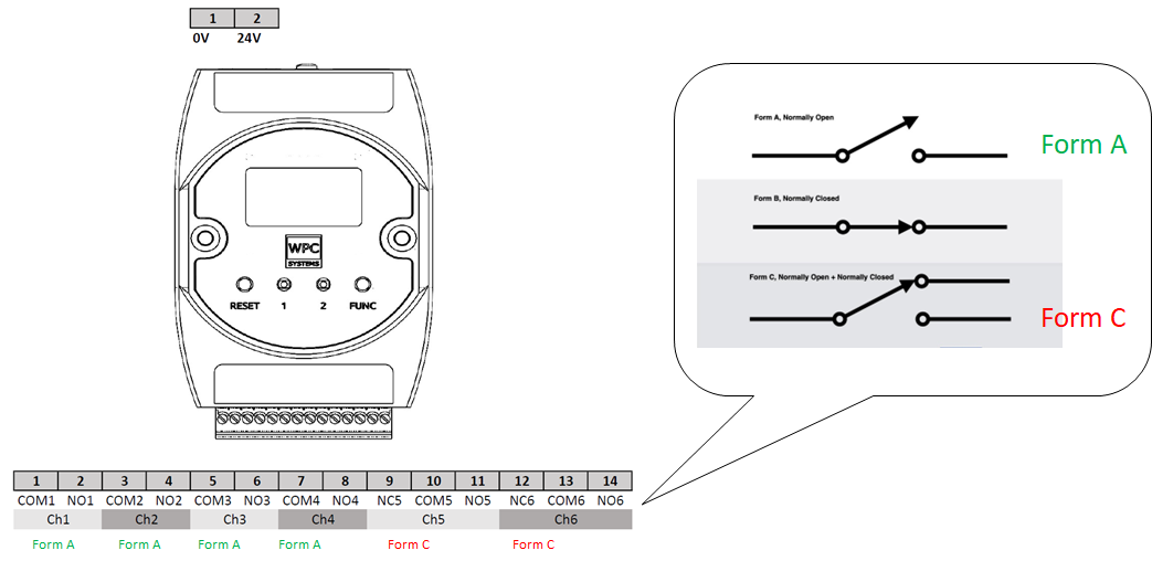 - 4 通道 Form-A (常開) + 2 通道 Form-C (常開+常閉)