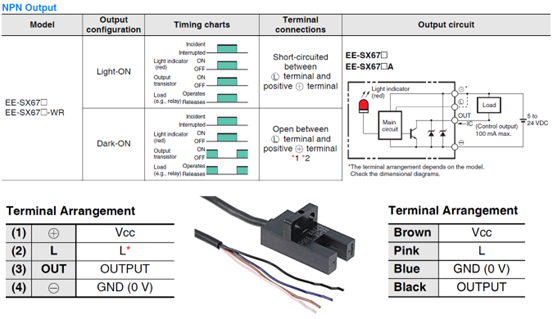 光電開關通常提供兩種動作模式,其切換取決於 L 端子 (L Terminal) 的接線方式: