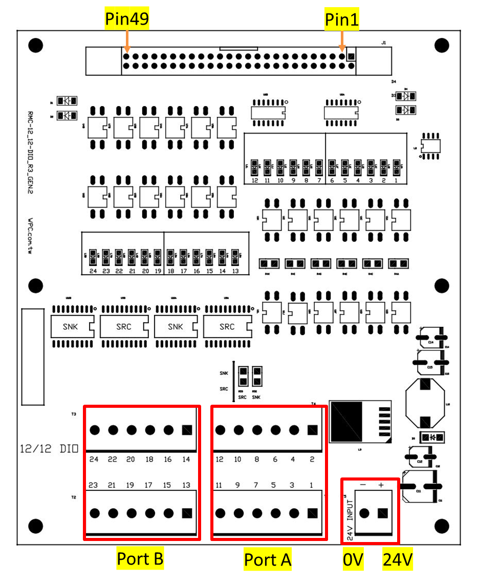 本模組提供 12 通道數位輸入 (DI) 與 12 通道數位輸出 (DO) 功能,適用於 24V 工業控制轉接。