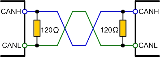 CAN bus 的接線非常簡單,只需將 CAN_H 和 CAN_L 訊號並接到 CAN 網路即可。USB-DAQ-CD 的 Pin35, 36 提供了 120 歐姆的內部終端電阻(Termination resistor)功能。如果需要使用終端電阻,只需將 Pin35, 36 兩個接點短路即可。
