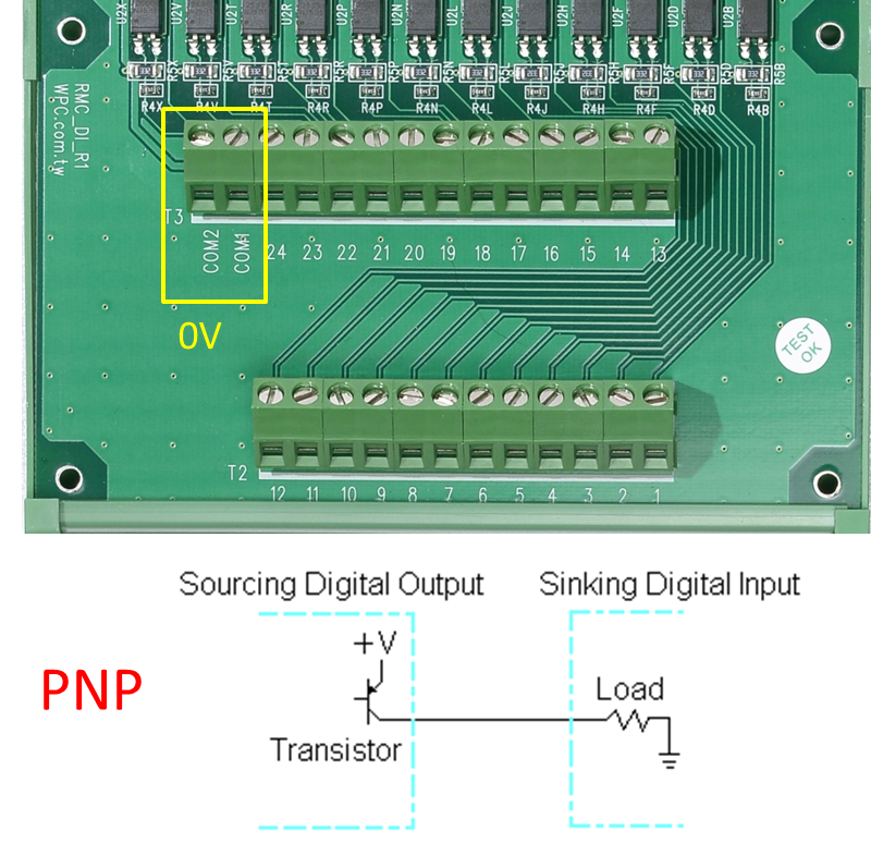 本模組提供 24 通道數位輸入,支援 NPN/PNP 架構,具備光耦合隔離保護。
