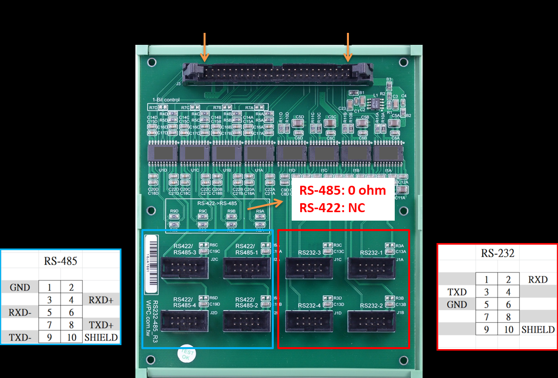 GECO支援模組RS-232 / 422 / 485本頁導覽RS-232 / 422 / 485 模組 本模組提供多通道序列通訊介面,支援 RS-232、RS-422 與 RS-485 標準,並具備通道間隔離功能。 1. 規格 項目規格電源No external power requiredRS-2324 chRS-485/4224 ch (Configurable)隔離Channel to channel isolation 2. 外觀與腳位圖 Pinout