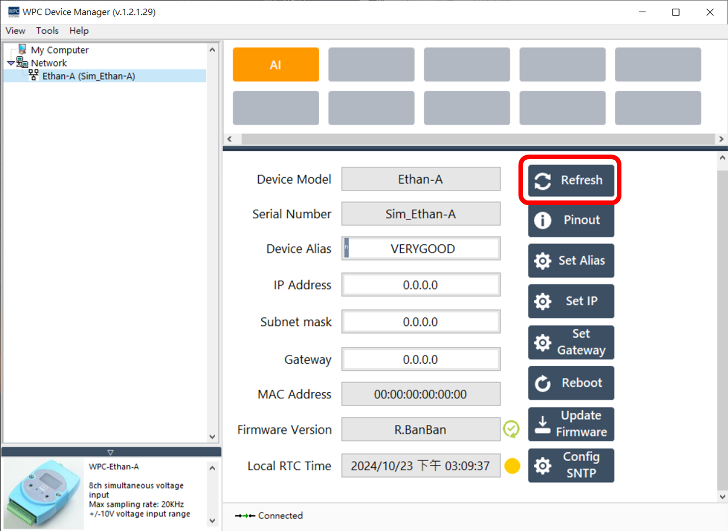 點擊 "Refresh" 按鈕可重新讀取並更新 Ethernet 裝置資訊。
