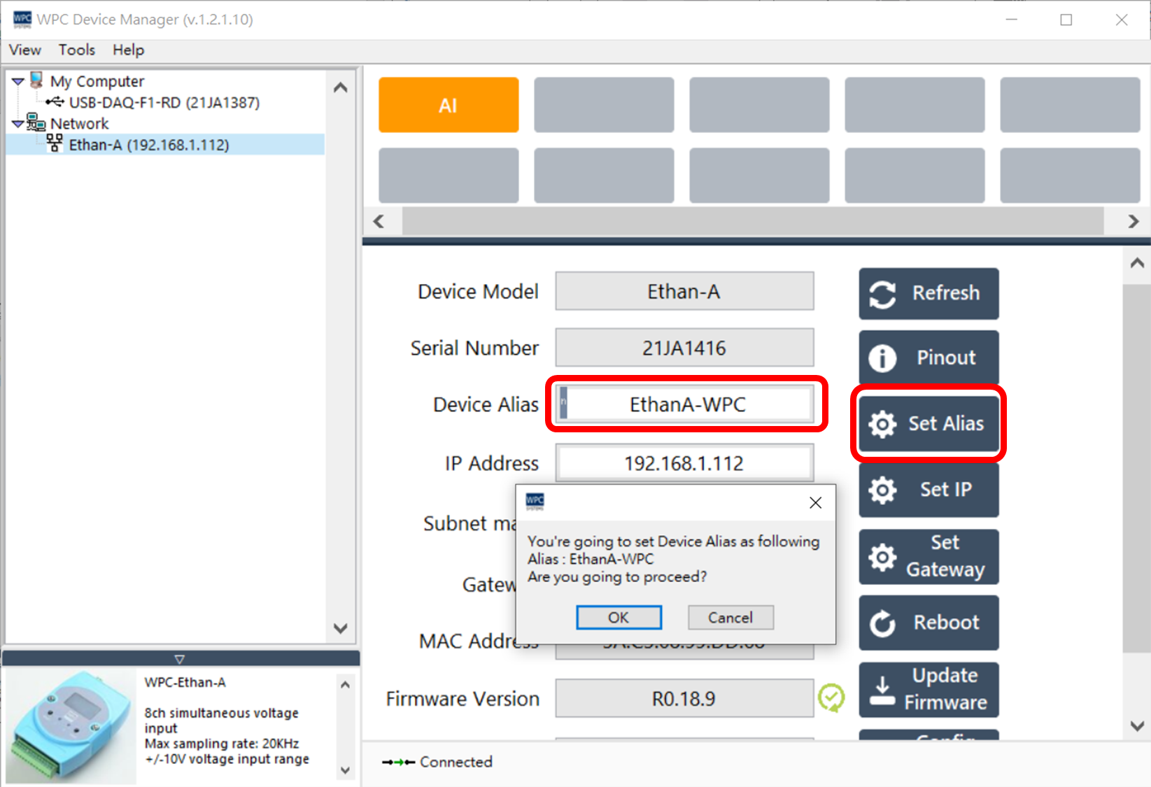 - 裝置重啟後,左側裝置列表中的名稱將更新為 EthanA-WPC。
