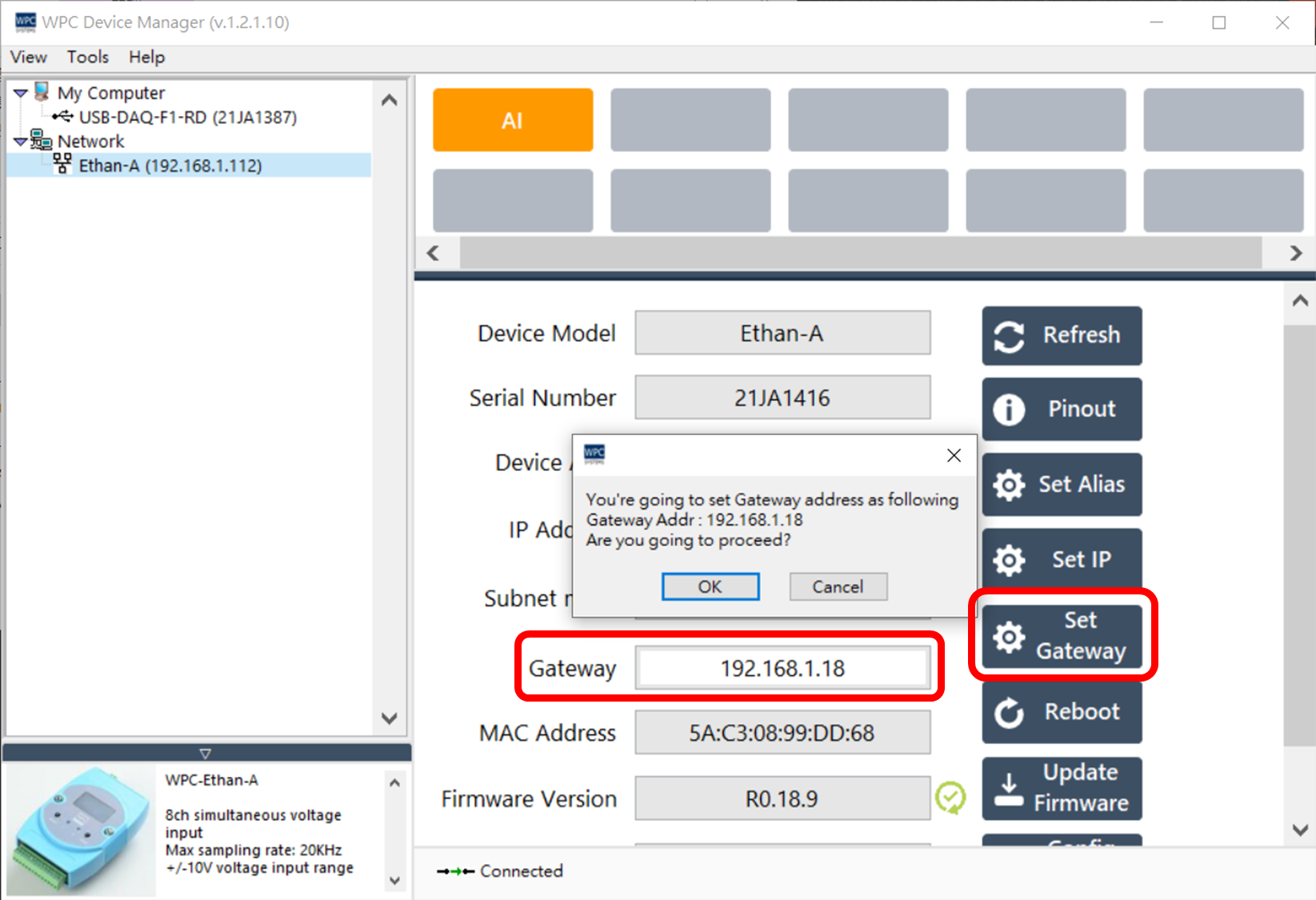 192.168.1.18)。 - 點擊 "Set Gateway" 按鈕。