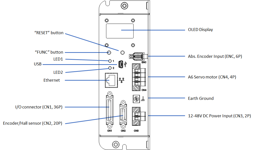 | 11 | A6 Motor Power Output(CN4, 4P) | Servo motor power output, connected to the power input terminal of Panasonic A6 series servo motors. |