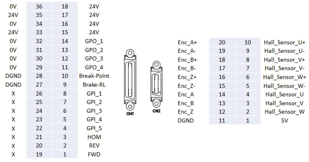 | Other I/O | Brake release, Break-point |