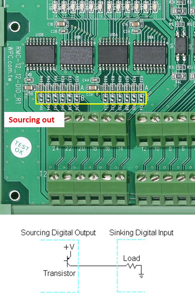 This module supports Sinking and Sourcing wiring modes, which need to be configured via resistors on the breakout board.