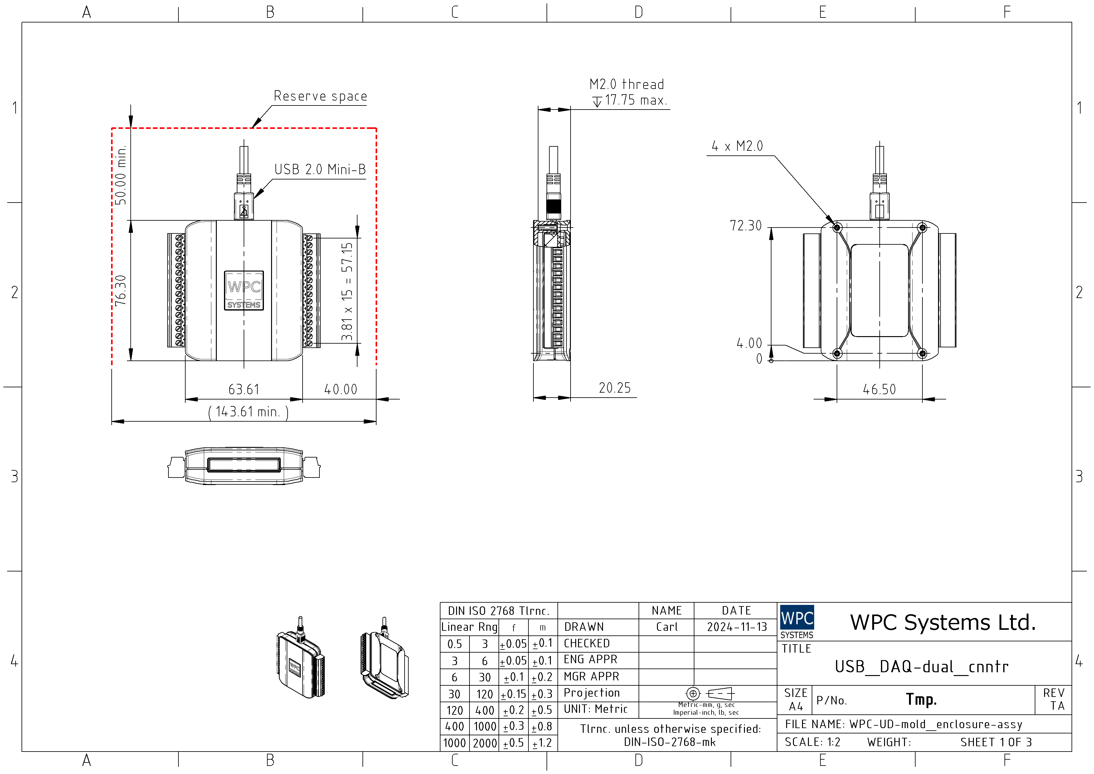 USB-DAQ SeriesProduct DimensionsOn this pageProduct Dimensions2D Product Dimensions Applicable to USB-DAQ-AD, USB-DAQ-AOD, USB-DAQ-RD, USB-DAQ-CD Applicable to USB-DAQ-D, USB-DAQ-D-SNK Applicable to USB-DAQ-TD