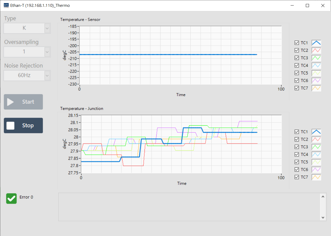 | Start | Start reading temperature values. |