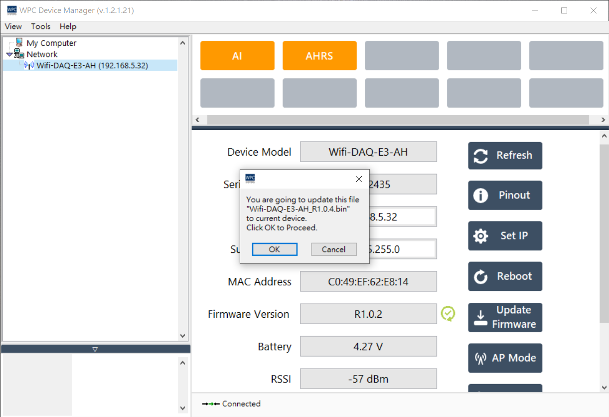 Click the "AP Mode" button to enable the AP mode of the WIFI device.