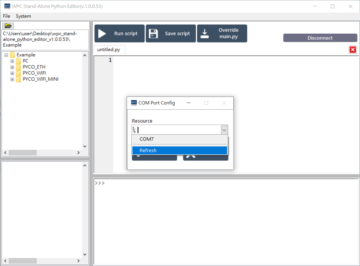 - Project File (Target): Displays the file list on the target device (WPC hardware).